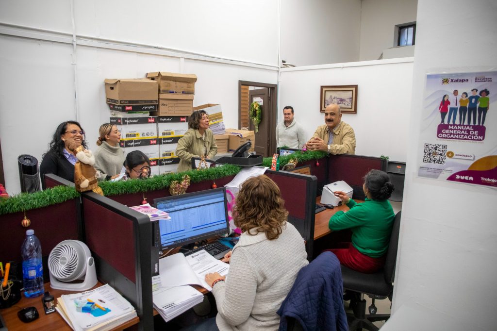 Xalapa, Ver.- Para reconocer la labor y esfuerzo del funcionariado del Ayuntamiento, el alcalde Ricardo Ahued Bardahuil realizó un recorrido por distintas áreas del Palacio Municipal.