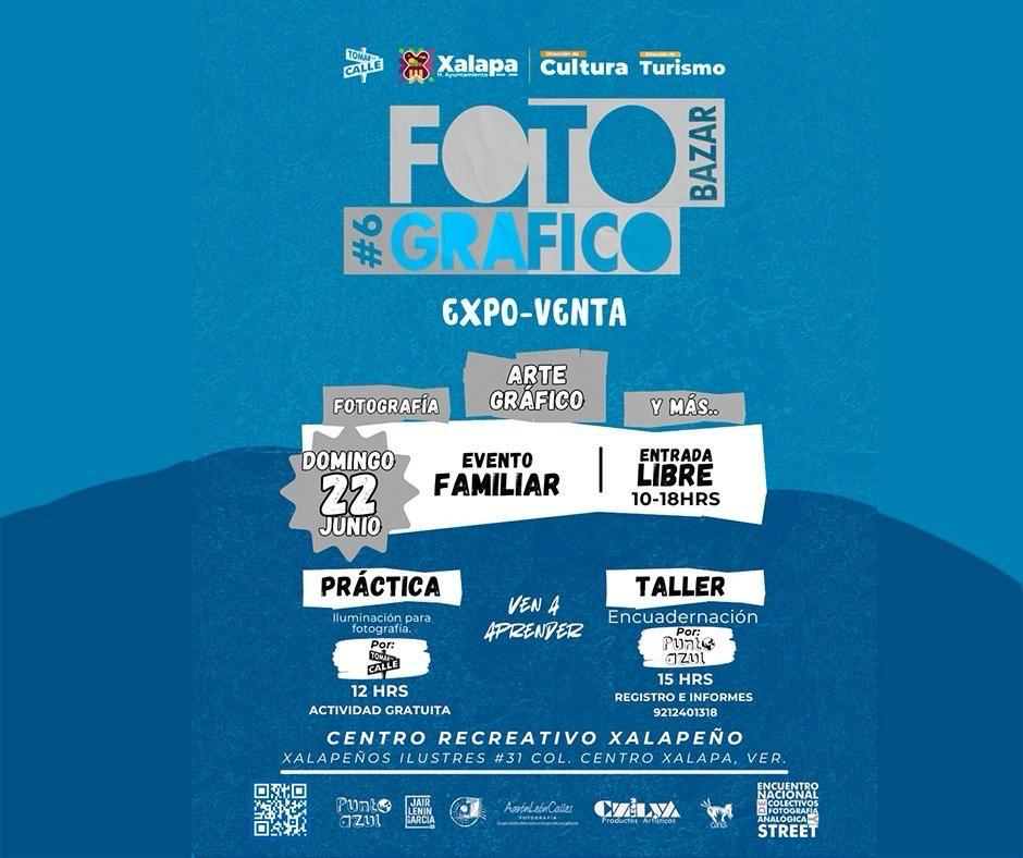 El domingo, desde las 10:00 horas, en el CRX se desarrollará el bazar Foto-gráfico número seis, del Colectivo Tomar la Calle. A las 12:00 horas, en el Parque Juárez, se tendrá el tradicional programa “Domingos Familiares” y juegos autóctonos.