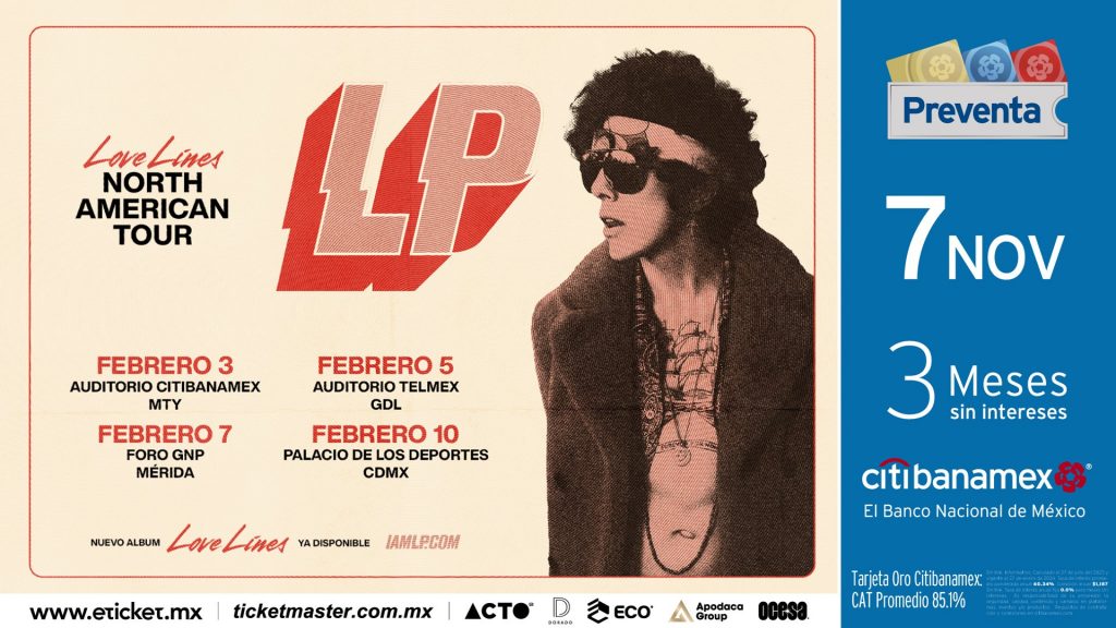 Para presentar su más reciente proyecto discográfico la cantante Laura Pergolizzi, conocida artísticamente como LP, volverá a nuestro país para dar cuatro conciertos comenzando el 3 de febrero del 2024 en el auditorio CitiBanamex de Monterrey, dos días después llegará auditorio Telmex de Guadalajara, un par de días más tarde se presentará en el Foro GNP de Mérida y finalmente el día 10 del mismo mes visitará el Palacio de los Deportes de la Ciudad de México. Las presentaciones forman parte de su gira mundial, en donde se podrá escuchar su nuevo álbum titulado “Love Lines”.