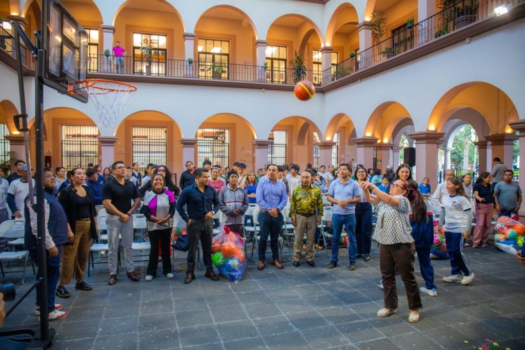 Acompañada por el Síndico Único, Dr. Marco Aurelio Martínez Sánchez; el Secretario del Ayuntamiento, Mtro. Víctor Hugo Meza Cruz; el Director de Cultura Física, Lic. Rafael Manuel Herrera Moguel; el Coordinador de Atención Ciudadana, Lic. Juan Manuel González Muñoz; el Presidente de la Canaco Xalapa, Lic. Luis Llera Hernández; así como la comunidad escolar y padres de familia, refirió que la donación del material, que incluye balones de futbol, basquetbol, voleibol y redes, es resultado de las peticiones recibidas en el Día del Pueblo y las gestiones realizadas por la Dirección de Administración, a cargo de la Mtra. Flor de María Ruiz Haddad.