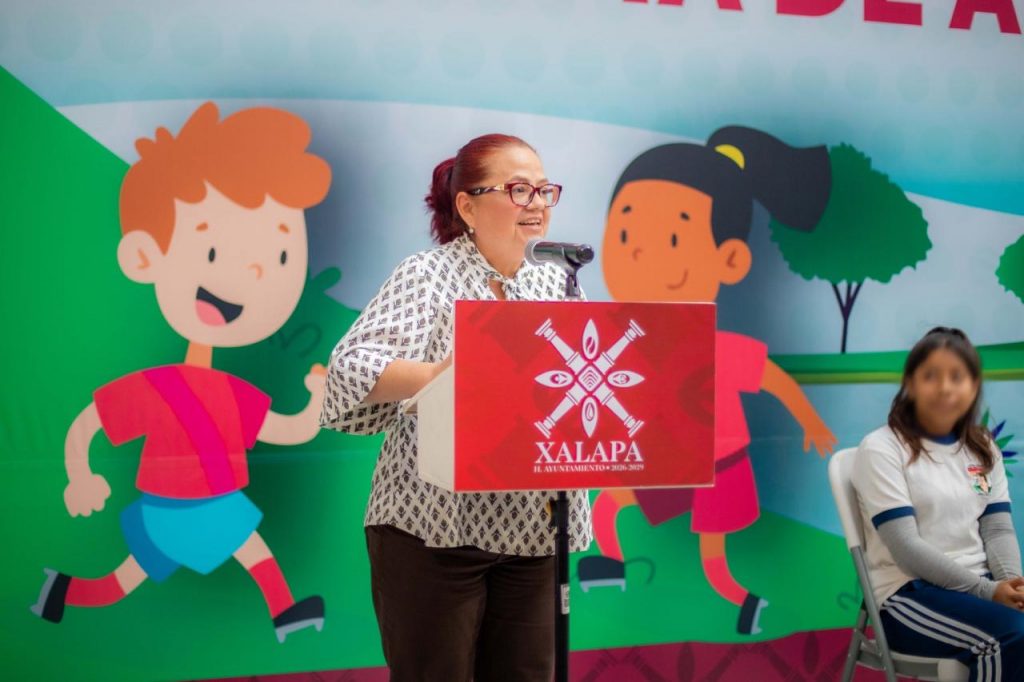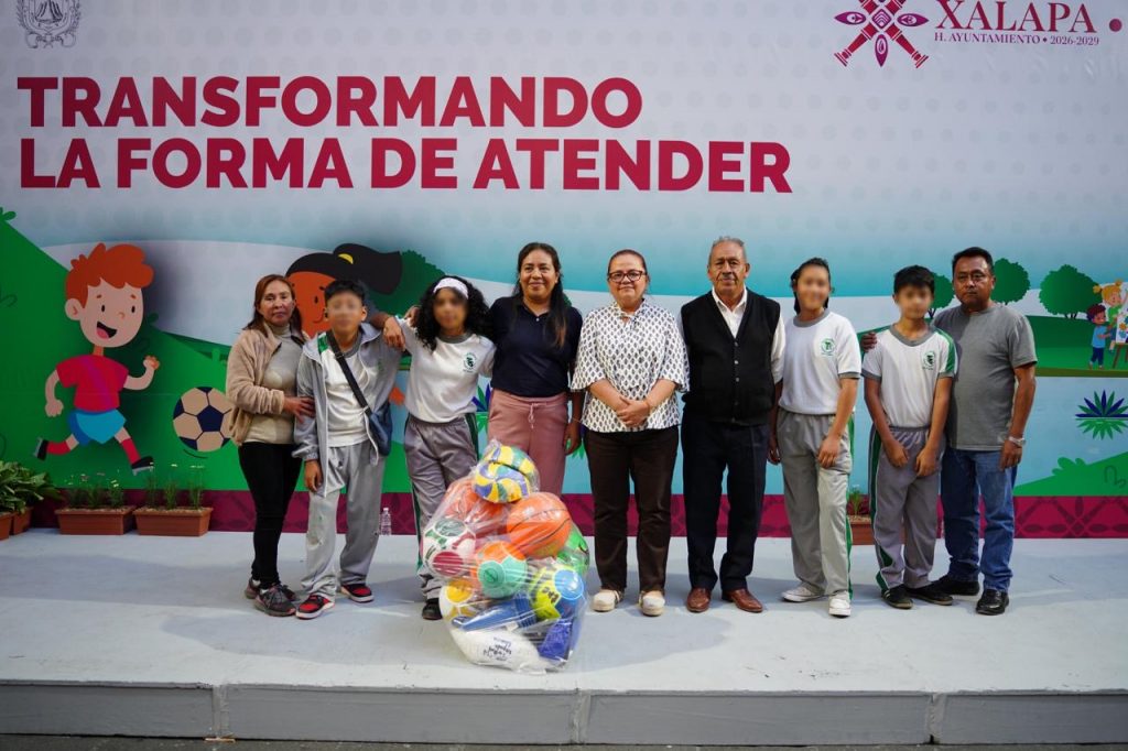 Xalapa, Ver., 14 de abril de 2026.- El fomento al deporte es una de las líneas de acción más importantes del Gobierno Municipal, ya que permite que la juventud y la niñez se desarrolle con valores como la disciplina, el trabajo en equipo, el respeto, la perseverancia y la sana convivencia, destacó la Alcaldesa, Lic. Daniela Griego Ceballos, al encabezar la entrega de material deportivo a siete planteles educativos.