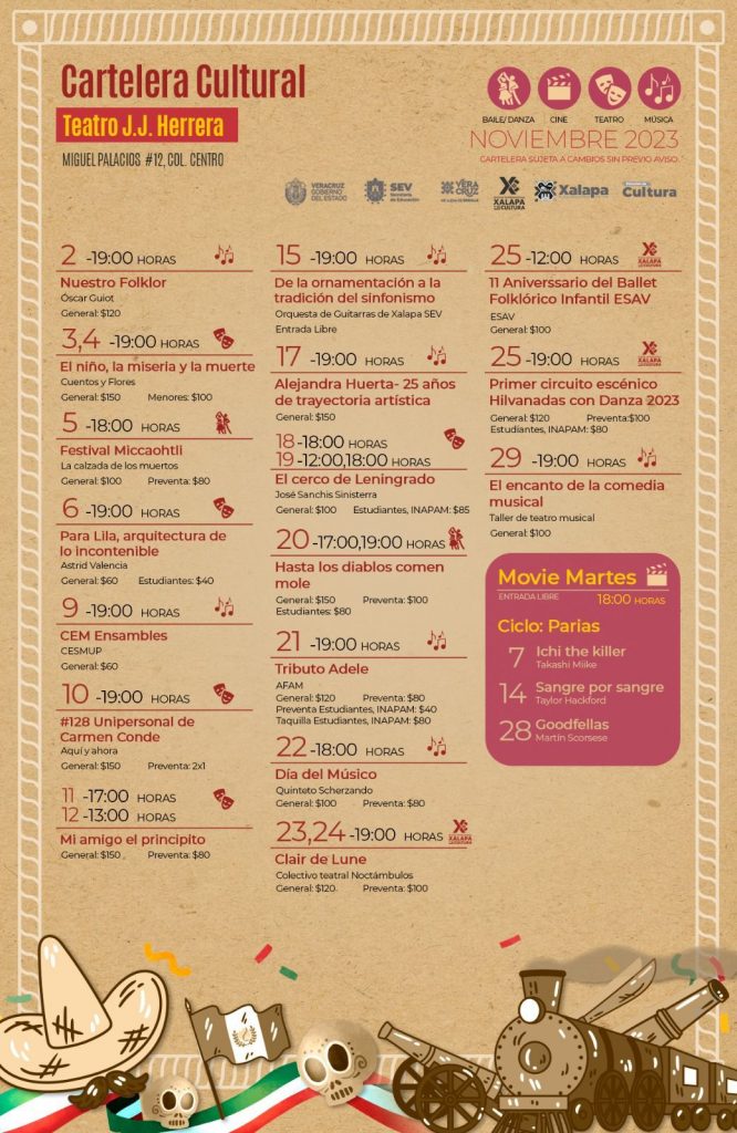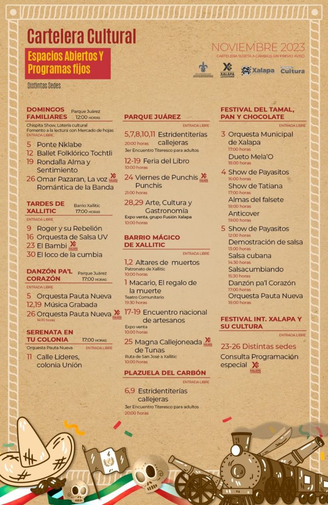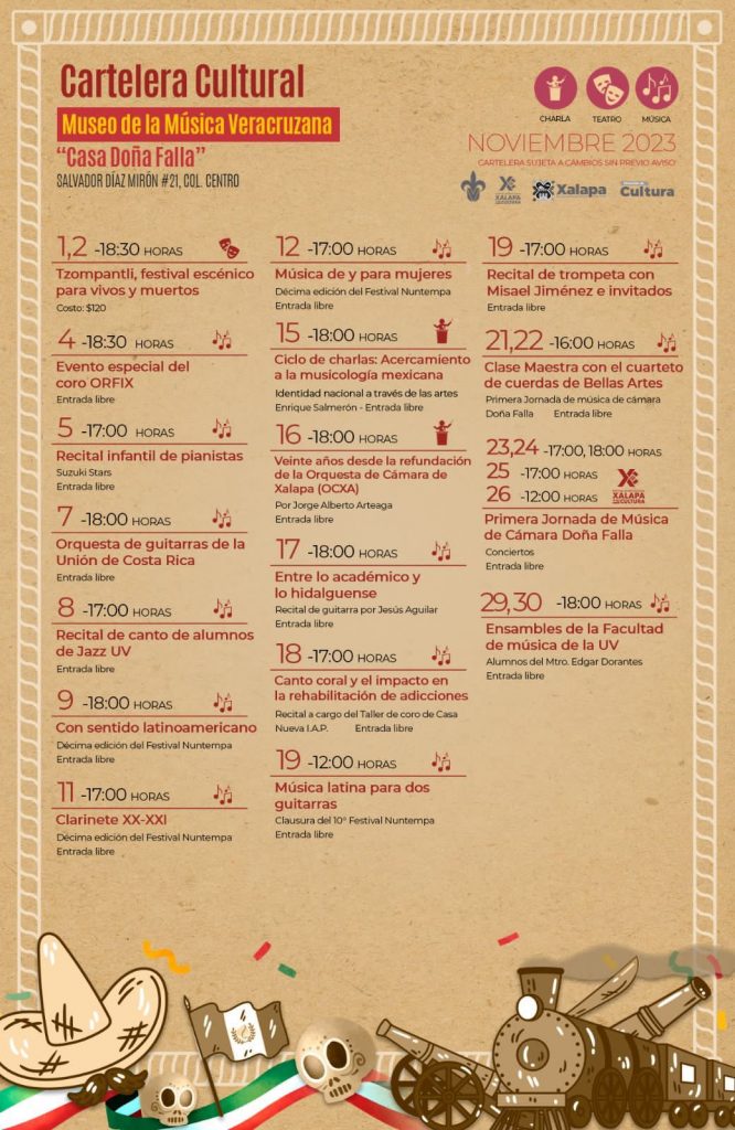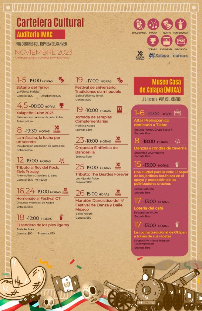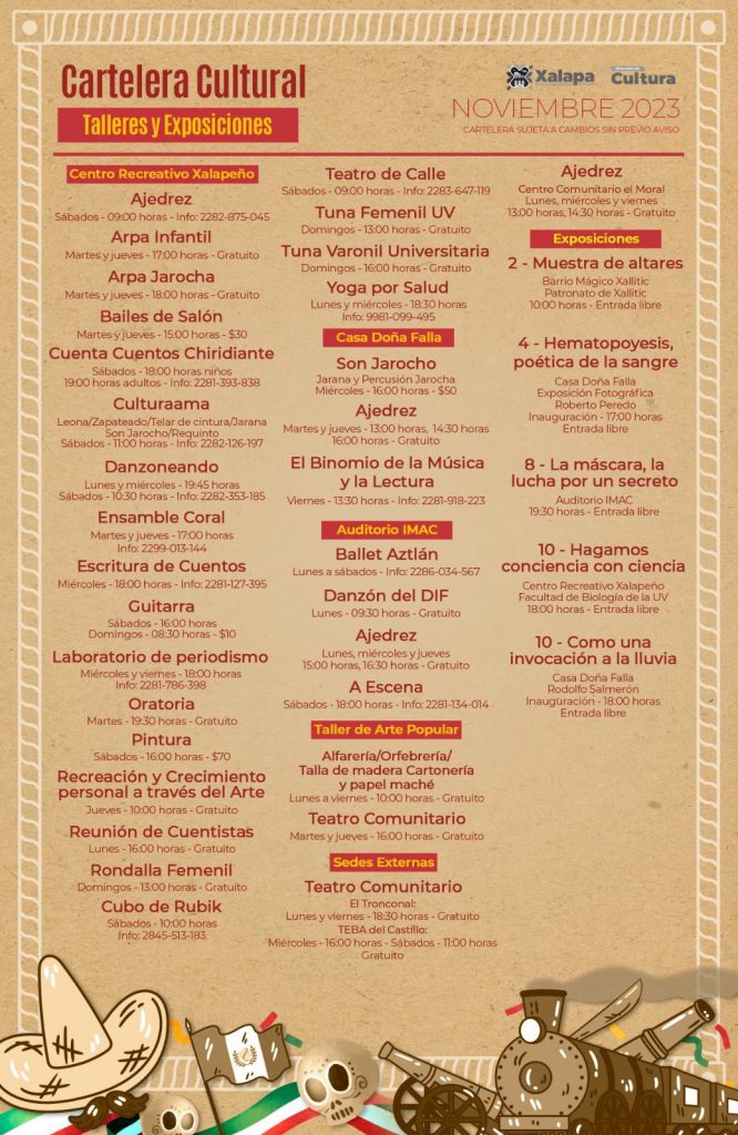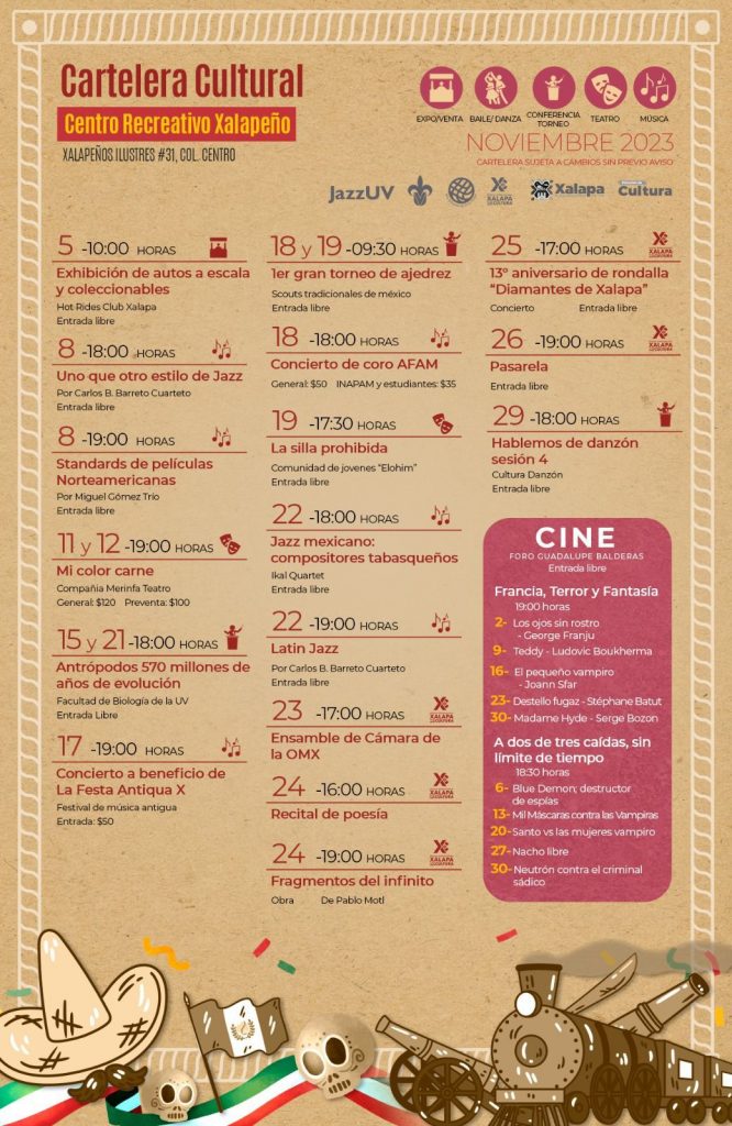 Más información y detalles de todos los eventos se pueden consultar en la página de Facebook Cultura Xalapa.