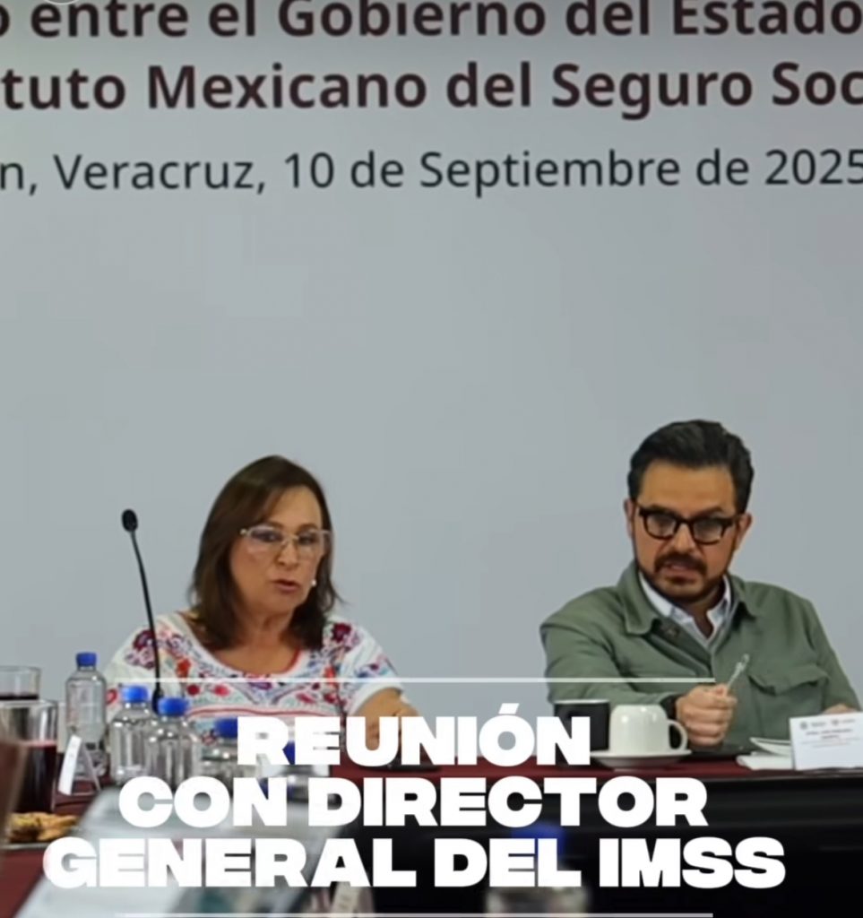 Minatitlán, Ver., miércoles 10 de septiembre de 2025.–La gobernadora Rocío Nahle García sostuvo una reunión de trabajo con el director general del Instituto Mexicano del Seguro Social (IMSS), Zoé Robledo Aburto, con el propósito de mejorar la atención médica y garantizar servicios de calidad a la población, especialmente en el sur del estado.