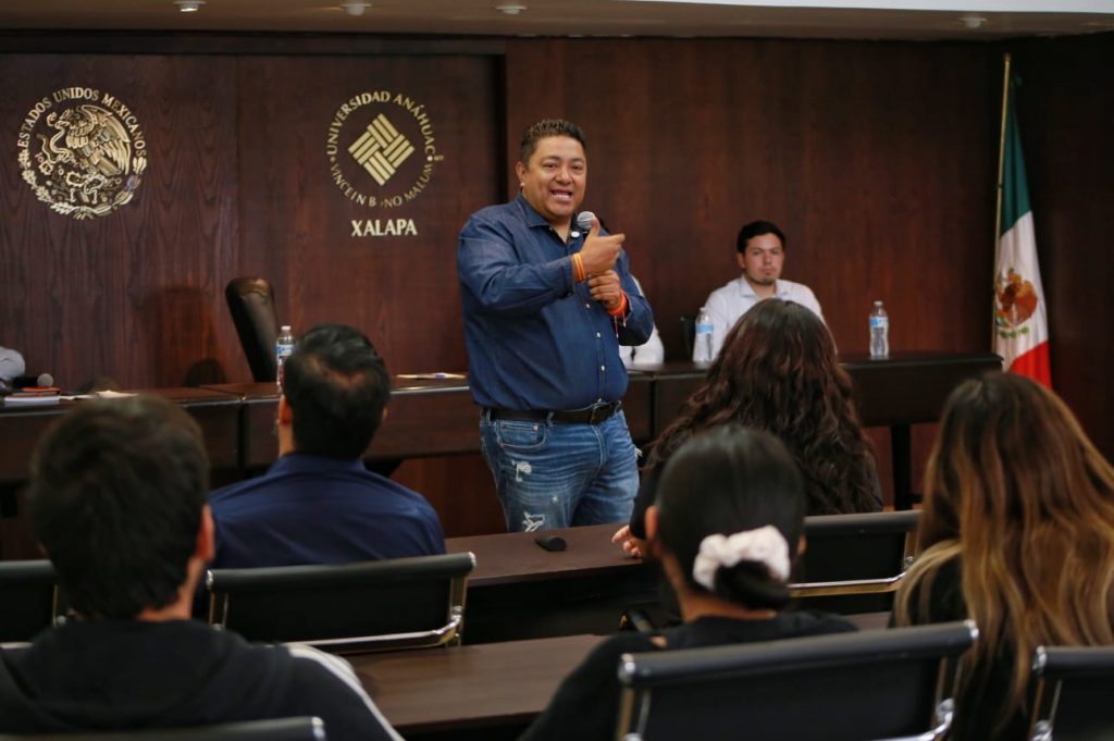 Román Moreno, candidato a la alcaldía de Xalapa por Movimiento Ciudadano, sostuvo este lunes un diálogo abierto con estudiantes de la Universidad Anáhuac, donde escuchó sus inquietudes y presentó algunas de sus principales propuestas de gobierno.
