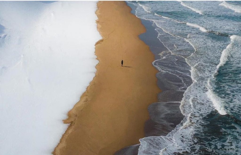 ¿Sabias que existe una impresionante playa donde se junta la nieve, la arena y el mar?