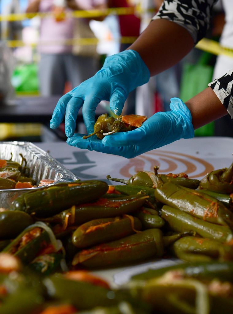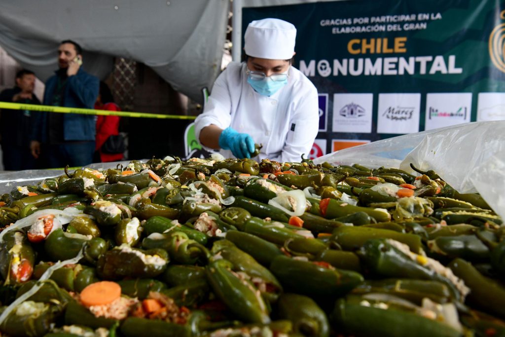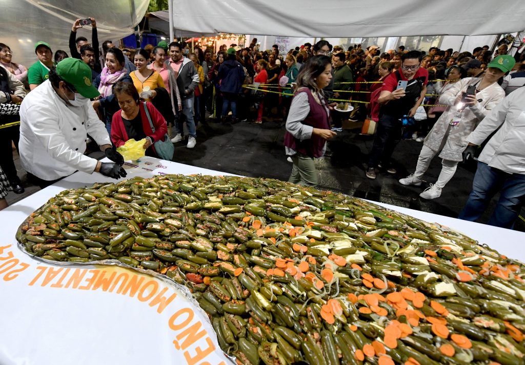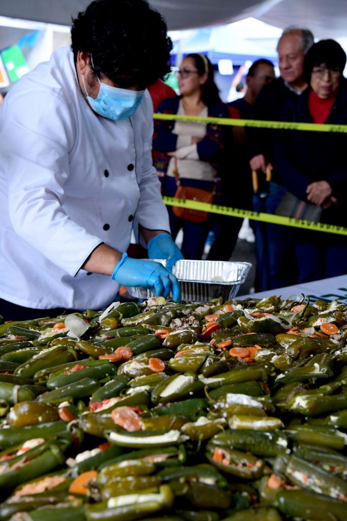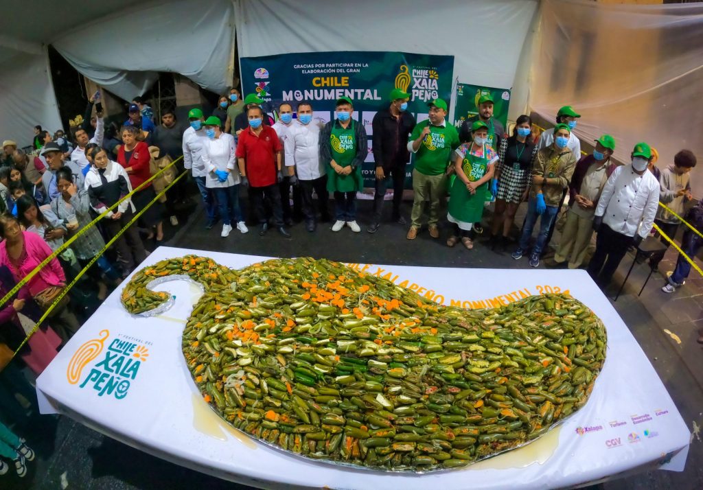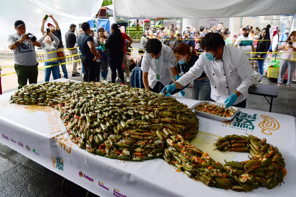 Xalapa, Ver.- Como parte de las actividades del primer Festival del Chile Xalapeño, esta tarde se logró conformar un Chile Relleno Monumental con 5 mil 125 chiles en frío, rellenos de diversas variedades, que entregaron expositores, estudiantes de gastronomía, familias y comerciantes de Xalapa y la región.