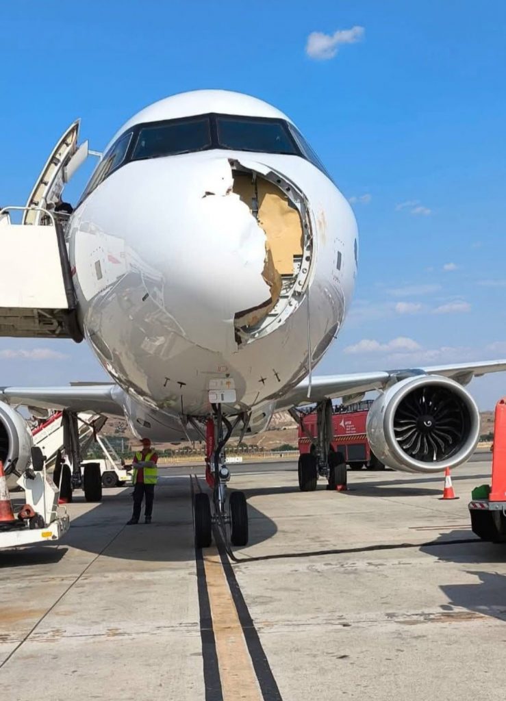 La tarde del domingo 03 de agosto un ave de gran tamaño se impactó con un avión de Iberia en Madrid. Los pasajeros del vuelo con destino a París vivieron momentos de estrés al percatarse que aeronave tuviera que regresar al aeropuerto desde haber despegado apenas a los pocos minutos después de haber partido debido al impacto contra un ave.