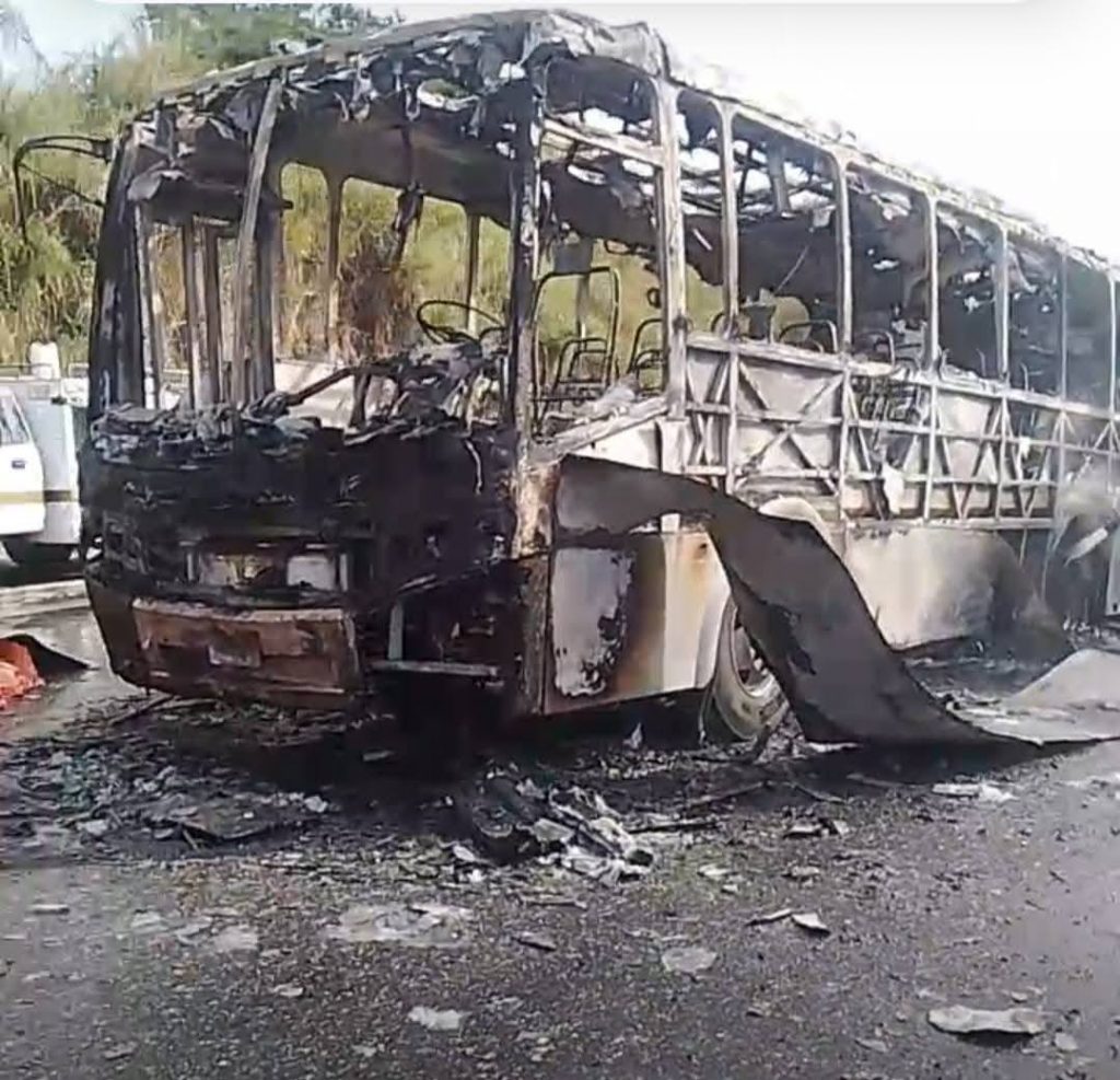 Se trata de la unidad con el número económico 31, se presume que las causas de este incendio se produjo por un corto circuito en el sistema eléctrico, no se reportan personas lesionadas.