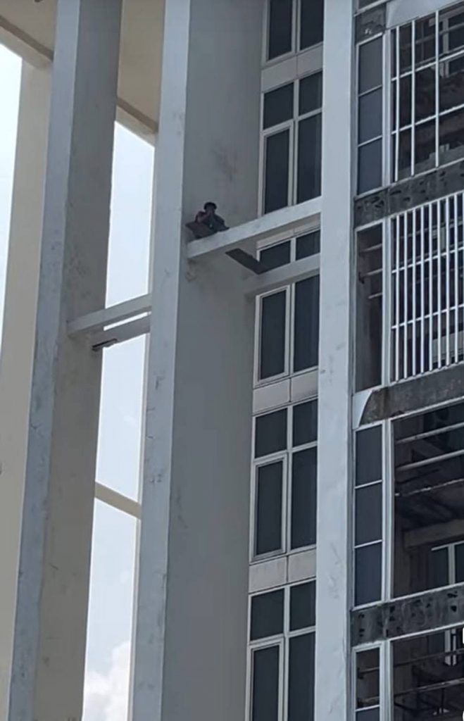 Se implementó un operativo para convencerlo de que baje, pues existe el riesgo de que caiga.