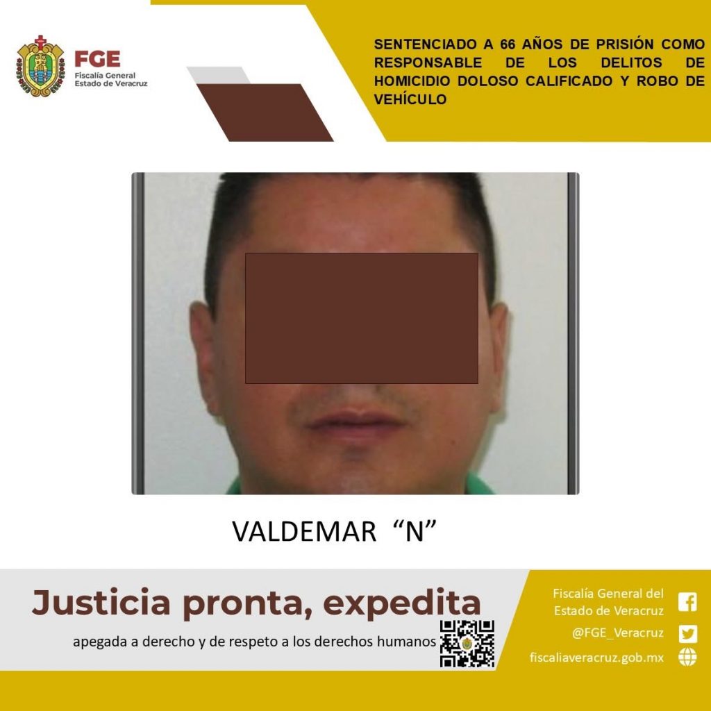 Xalapa, Ver., 8 de julio 2025.- La Fiscalía Regional Xalapa logró sentencia condenatoria de 66 años de prisión en contra de Valdemar “N” como responsable del delito de homicidio doloso calificado cometido en agravio de R.R.V.M., E.I.O.M y/o E.O.H., A.L.M., I.P.G., P.C.M.,. M.M.O., J.M.R., M.V.C., M. L.R., y A.G.C., y robo de vehículo cometido en agravio de una víctima con identidad resguarda.
