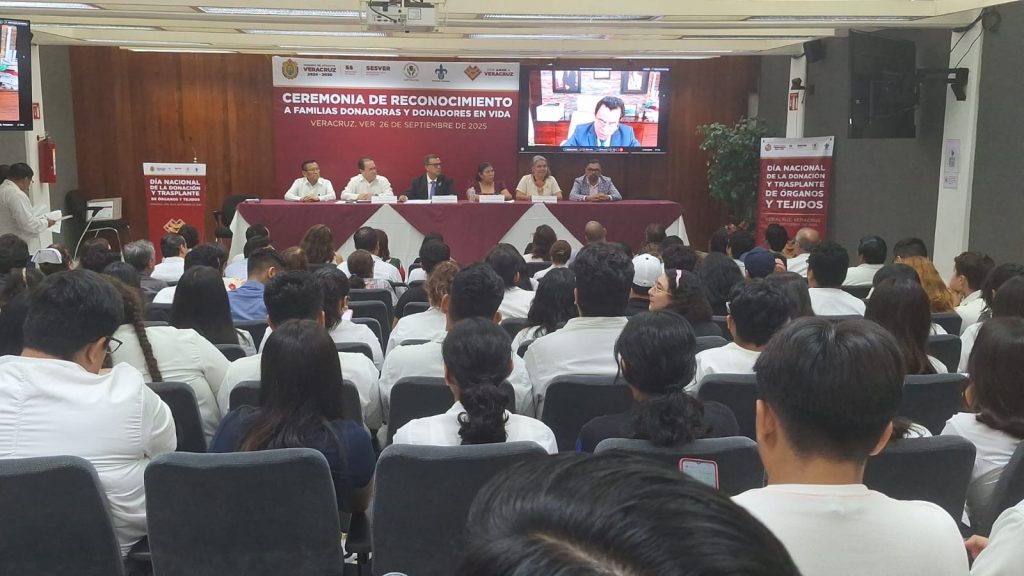 Veracruz, Ver., sábado 27 de septiembre de 2025.- Al refrendar su compromiso con la cultura de la donación de órganos y tejidos en Veracruz, la Secretaría de Salud (SS), llevó a cabo la ceremonia de Reconocimiento a Familias Donadoras y Donadores en Vida, quienes, a través de este gesto de solidaridad, han mejorado la calidad de vida de las personas trasplantadas.