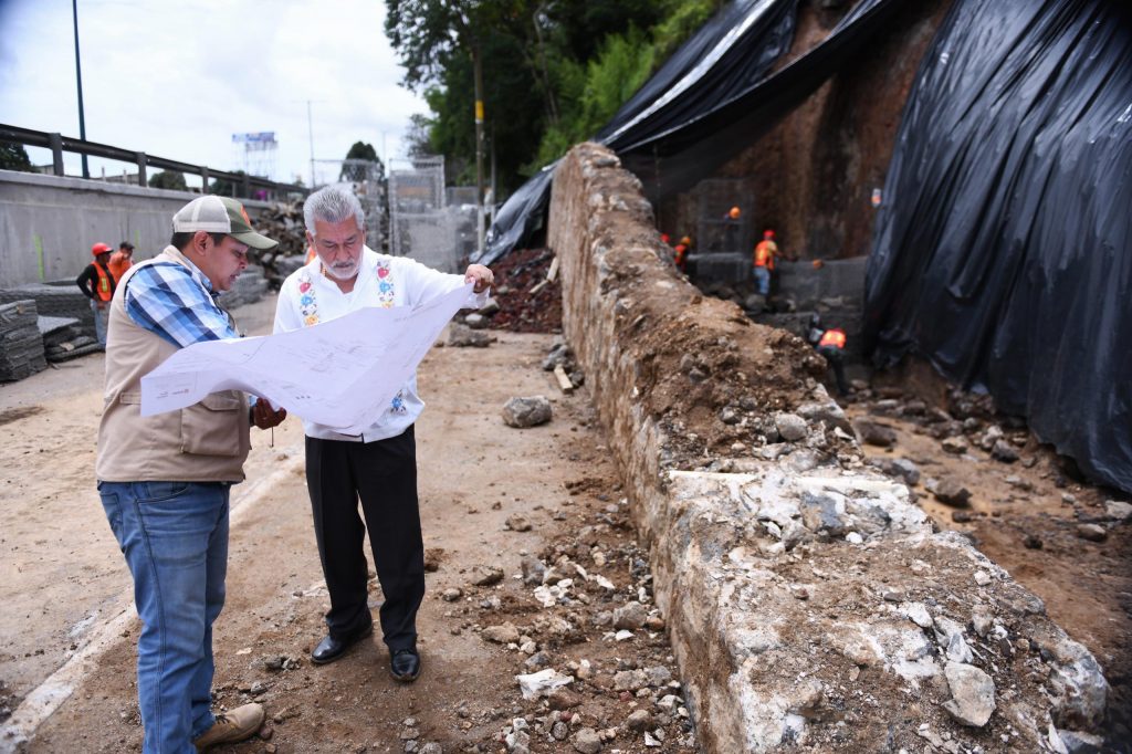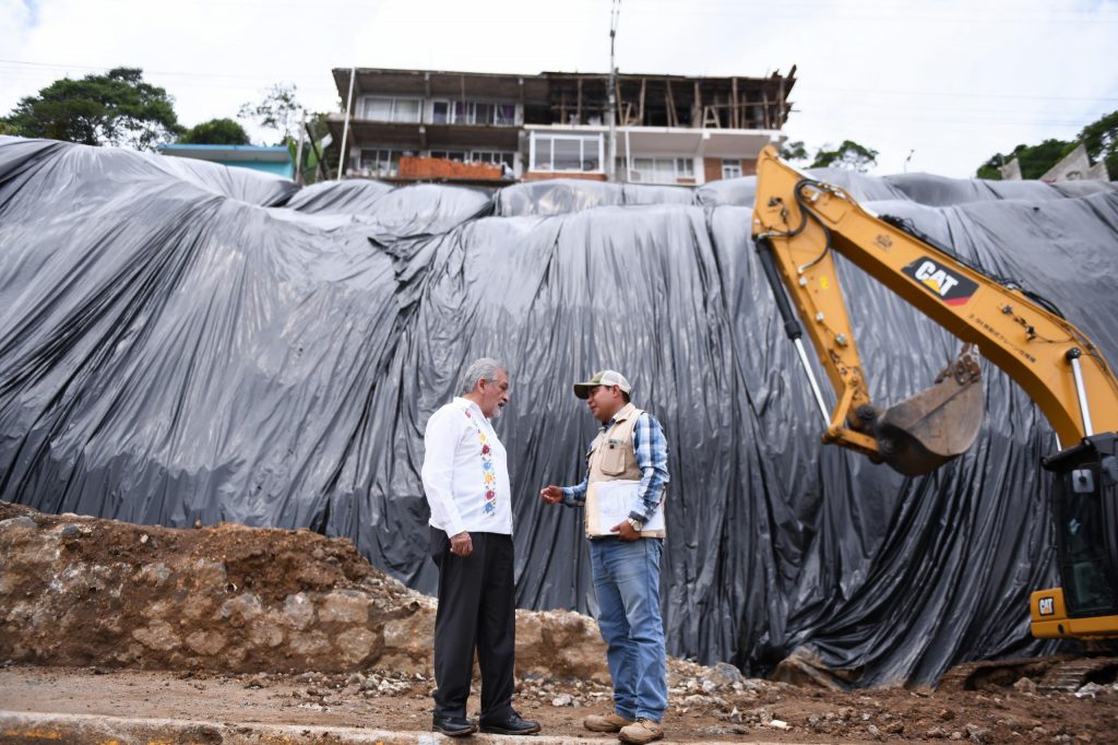 Durante la visita, el Edil constató que las labores se llevan a cabo conforme al cronograma de obra, misma que considera estructuras de gaviones, muro mecánicamente estabilizado y drenes para evitar la infiltración de escurrimientos pluviales.