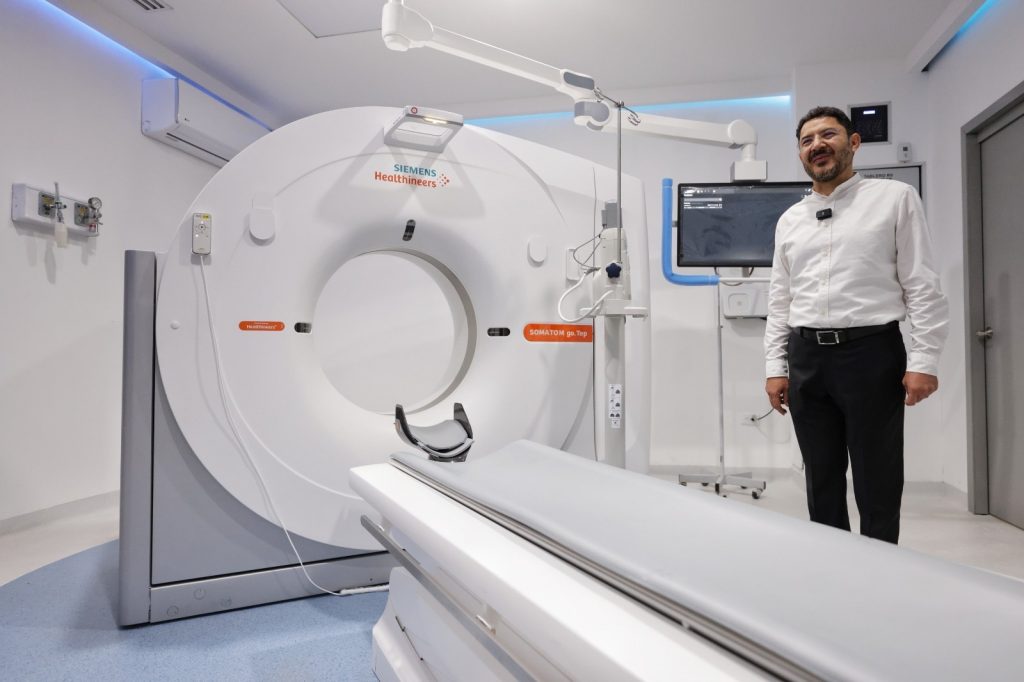 Entre los equipos que observó, destacó el nuevo tomógrafo axial/computarizado de 128 cortes de última generación, que inició operaciones hace poco más de un año y que ha mejorado sustancialmente la prestación de servicios para el diagnóstico, pronóstico y tratamiento de una amplia gama de enfermedades.