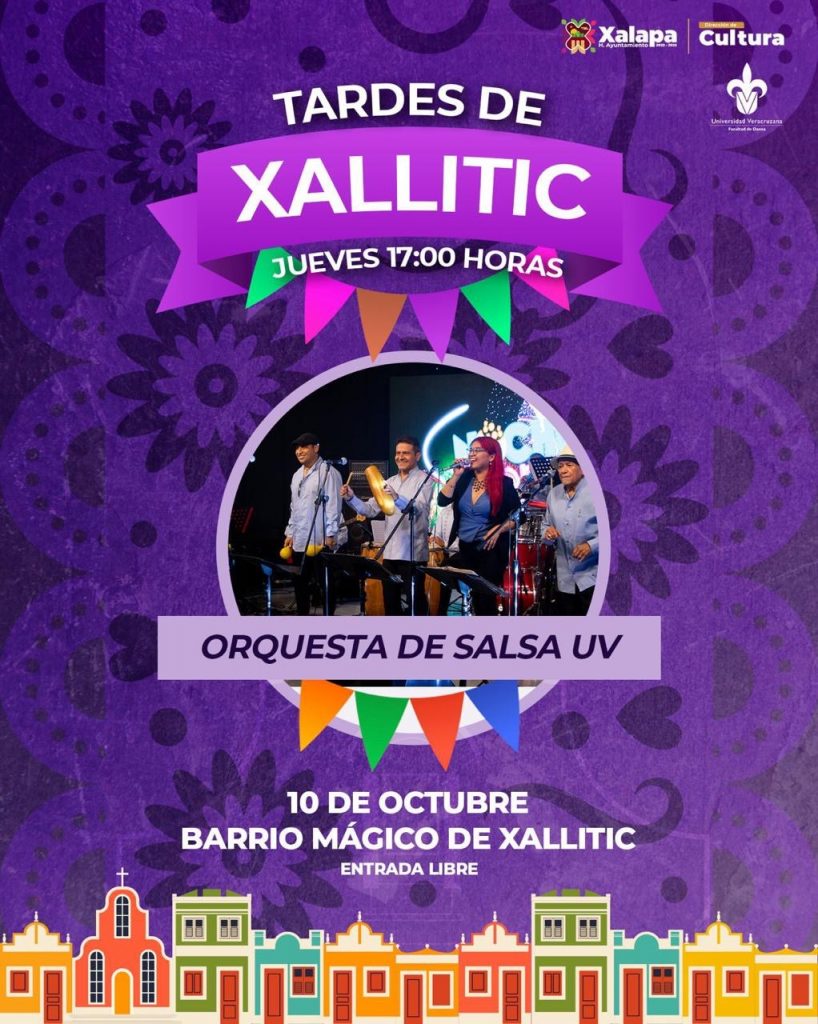 A las 17:00 horas en el Barrio Mágico de Xallitic, se presentará la Orquesta de Salsa de la UV, y en paralelo, en el Museo Casa de Xalapa, Joana Lourenco Portugués, Miguel Pina Portugués, Doris Dávila Dioses y Saray Cruz Hernández enseñarán “Cómo aprender a meditar”.