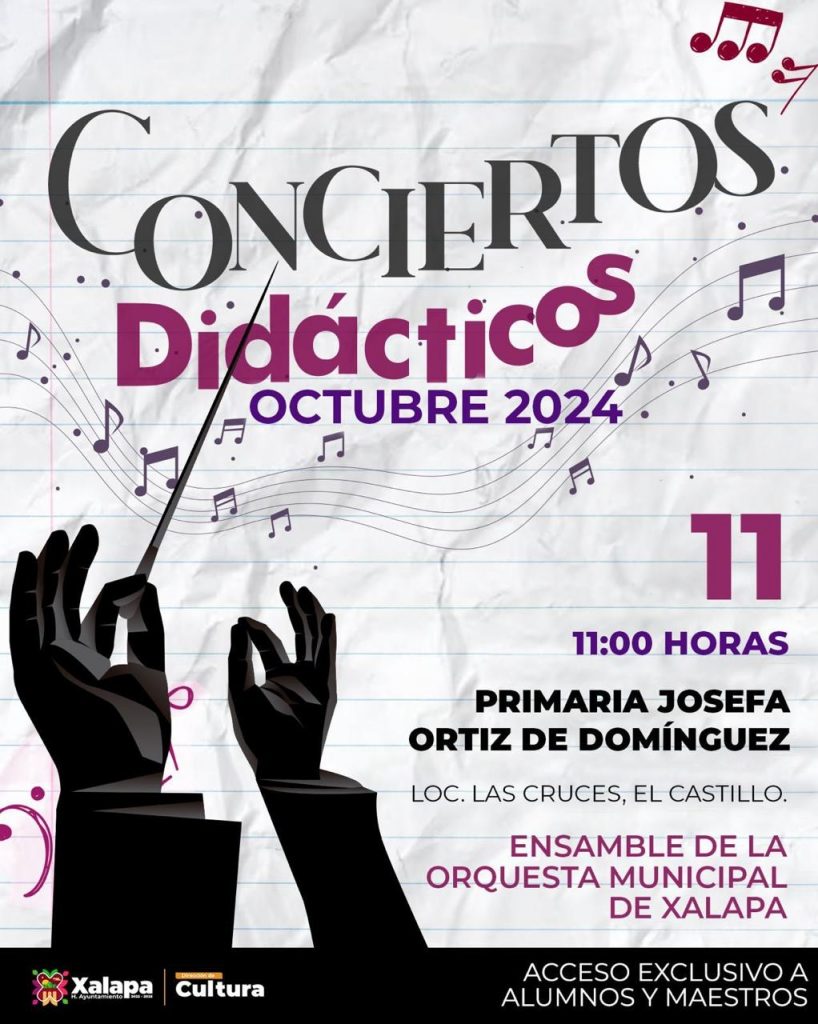 El jueves 11 de octubre a las 11:00 horas, la Orquesta Municipal de Xalapa ofrecerá un Concierto Didáctico en la Primaria “Josefa Ortiz de Domínguez”; a la misma hora, pero en el Teatro J.J. Herrera, Dafnis Prieto llevará a cabo una clase maestra, lo mismo que Christopher Buckholz, a las 16:00 horas, en el marco del JazzUV.
