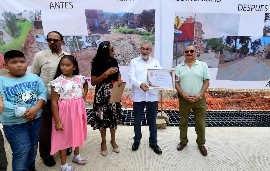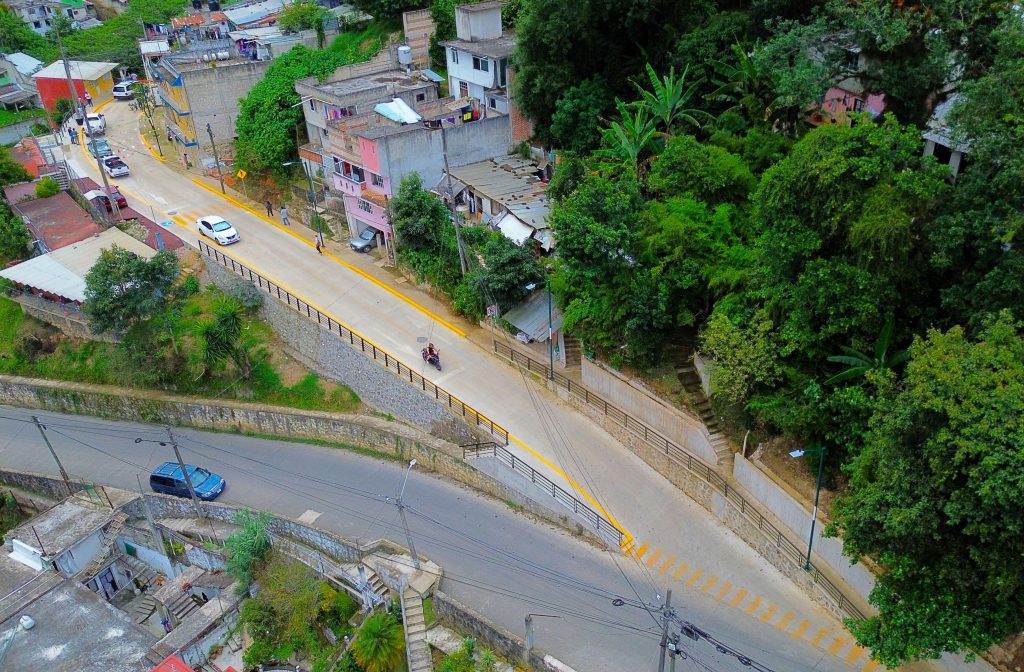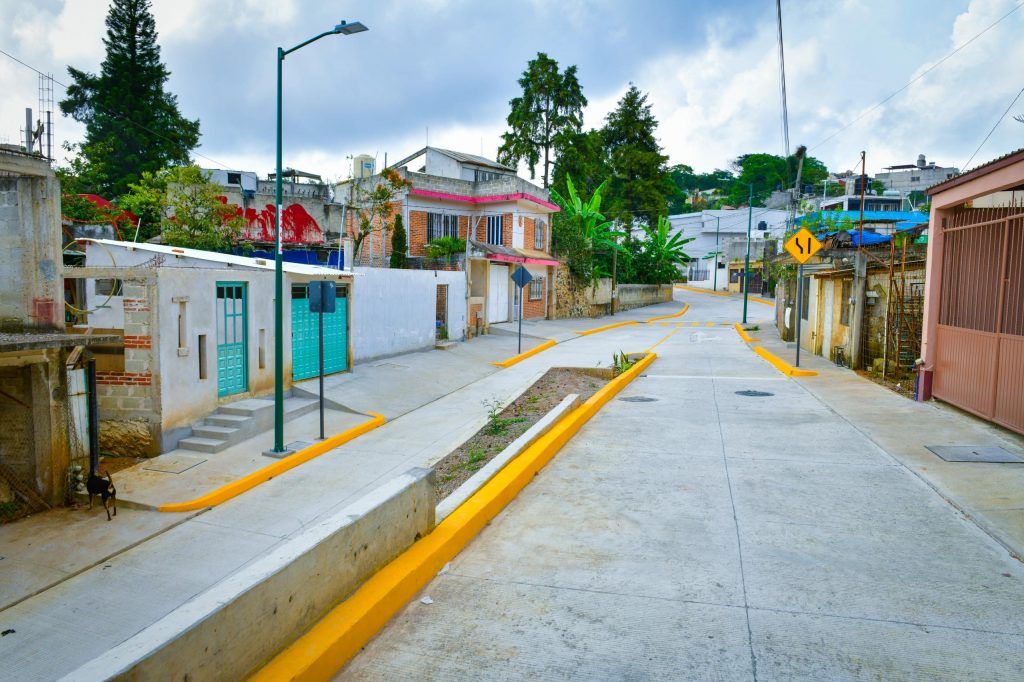 La obra incluyó en algunos tramos red de agua entubada y drenaje sanitario, así como murete, barandal, alumbrado público, guarniciones, banquetas y 2 mil 382 metros cuadrados de concreto hidráulico.