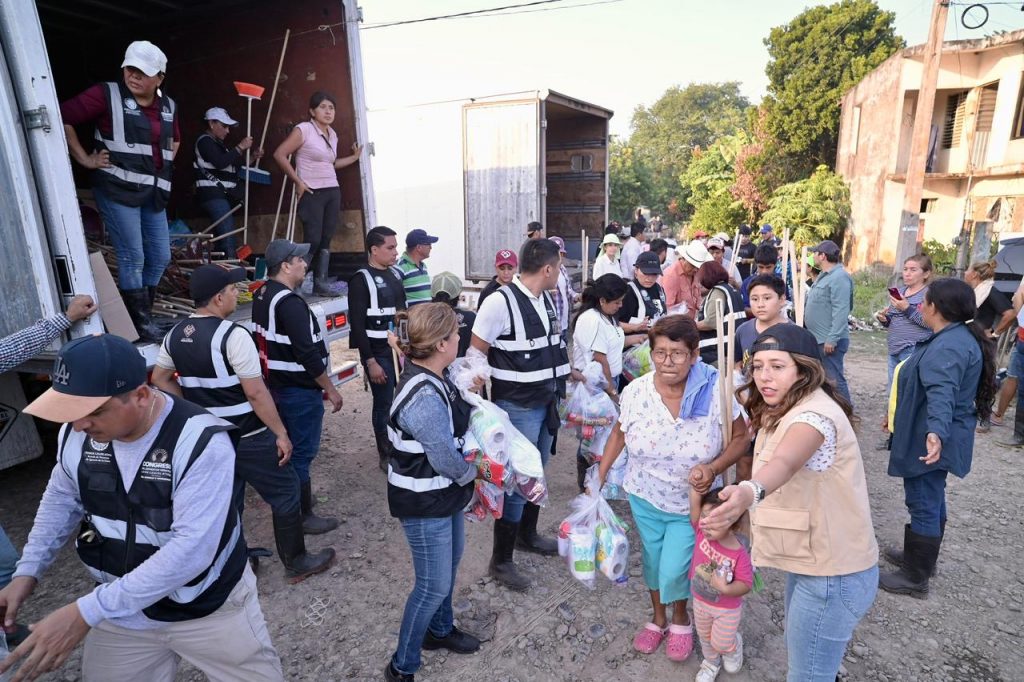 Al visitar la localidad de Estero del Ídolo y las colonias Heroica Veracruz, Barrio de las Flores, Jardín Viejo, así como las comunidades San Miguel, Raya Oscura, Zacatal y Santa Rosalía, y con la participación de la presidenta de la Mesa Directiva, diputada Naomi Edith Gómez Santos, y del coordinador del Grupo Legislativo del Partido Verde Ecologista de México (PVEM), diputado Carlos Marcelo Ruiz Sánchez, el legislador Bautista Hernández informó de la adquisición y entrega de 10 mil despensas, siete mil kits de limpieza y mil tinacos a las personas damnificadas, resultado del Acuerdo de las y los integrantes del Congreso local de donar un mes de salario.