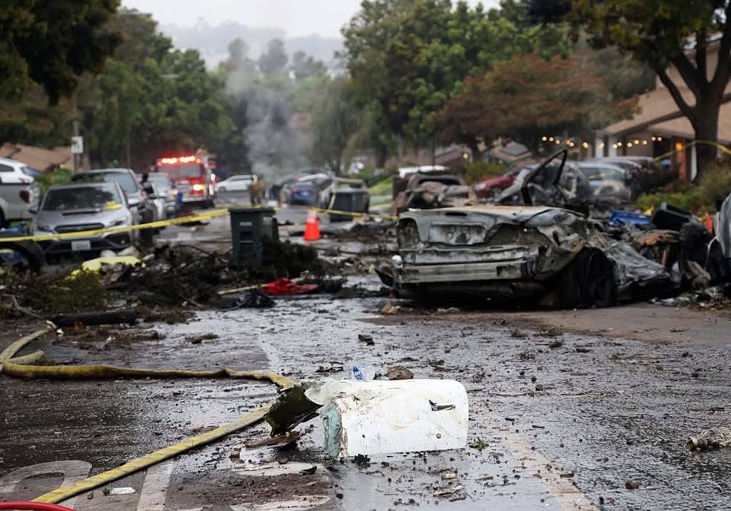 Una avioneta se estrelló esta mañana en Murphy Canyon, desatando un incendio que alcanzó al menos 15 viviendas y varios vehículos. Autoridades reportan un escenario crítico, con combustible derramado por la zona y una extensa área cubierta de escombros
