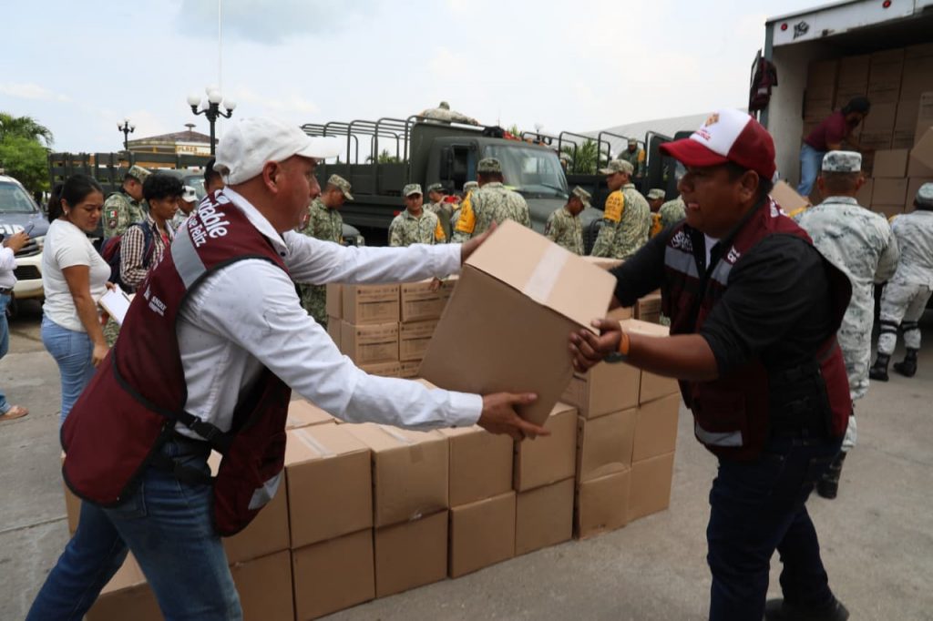En los municipios más golpeados por las lluvias —San Juan Evangelista, Texistepec, Jesús Carranza, Sayula de Alemán e Hidalgotitlán—, brigadas del DIF comenzaron la entrega de 2 mil 100 canastas alimentarias como parte del Programa de Atención a Población en Emergencia.