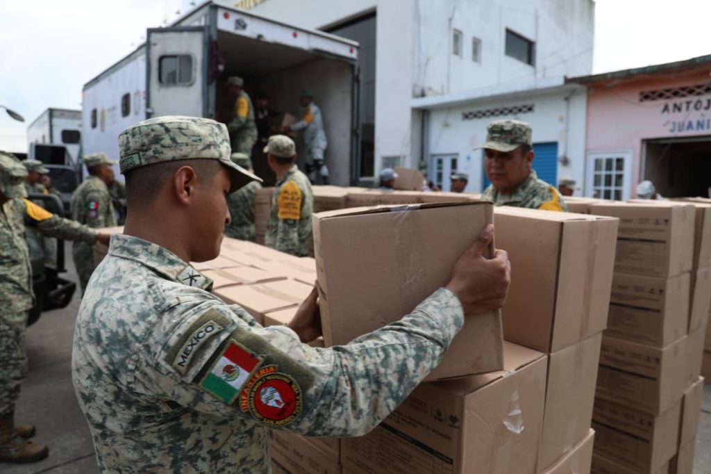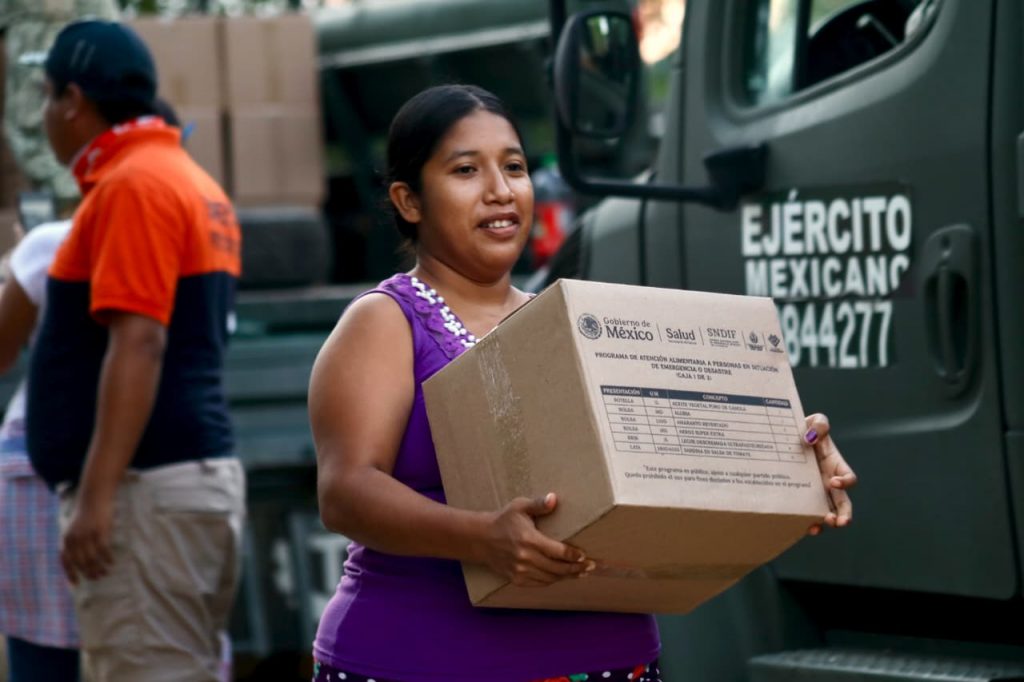 Este lunes en operativo especial y con la secretarías de la Defensa Nacional, y de Protección Civil se entregaron las primeras 503 canastas en San Juan Evangelista y Texistepec, durante el martes y miércoles la ayuda seguiráfluyendo a las demás localidades afectadas.