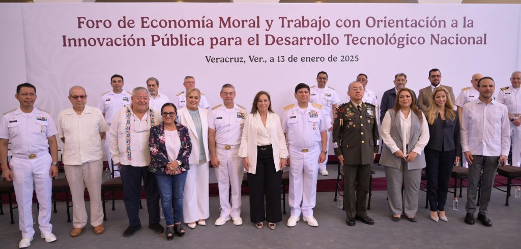 Veracruz, Ver., lunes 13 de enero de 2025.- Al inaugurar el Foro de Economía moral y trabajo orientado a la innovación pública para el desarrollo tecnológico nacional, la gobernadora Rocío Nahle García destacó la importancia de un modelo económico basado en principios éticos y de justicia social.