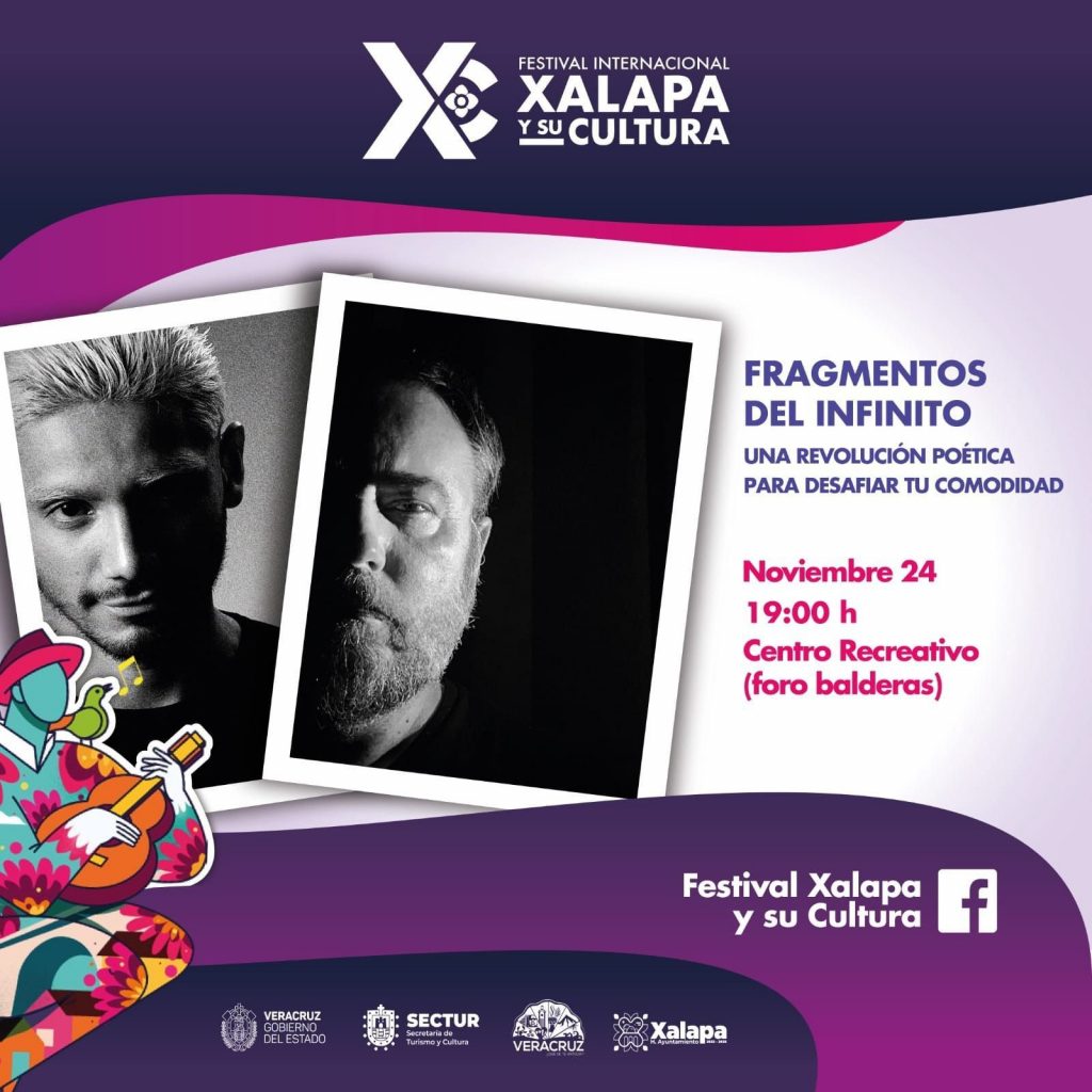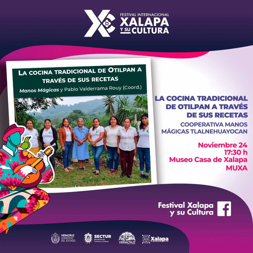 El viernes 24 de noviembre a las 12:00 horas en este mismo espacio estará Tania Chávez; a las 17:30 horas en el Museo Casa de Xalapa (MUXA), la Cooperativa Manos Mágicas Tlalnelhuayocan presentará “La cocina tradicional de Otilpan a través de sus recetas”; a las 19:00 horas en el CRX será el momento de “Fragmentos del Infinito, una revolución poética para desafiar tu comodidad”, y a la misma hora en el Barrio Mágico de Xallitic se presentará la obra “Macario, el regalo de la muerte”.