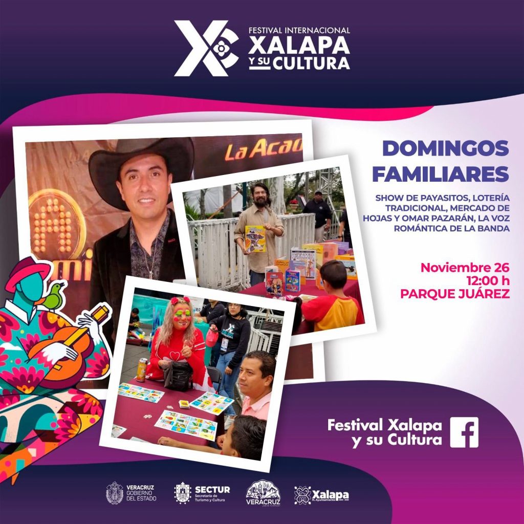 El domingo 26 de noviembre a partir de las 12:00, en el parque Benito Juárez, habrá show de payasitos, lotería tradicional, mercado de hojas, así como la presentación de Omar Pazarán La Voz Romántica de la Danza; Danzón Pa´l Corazón, Uzziel Díaz, Transeúntes, Ámbar 56 y Jenny and the Mexicats; mientras que en el Barrio Mágico de Xallitic, a las 11:00 horas, se presentará “Canto del Pueblo” y a las 15:00 horas, “Los Chaquistes”. Por último, a esta hora en el auditorio de la IMAC, el Ballet Yoliliztli llevará a cabo el Maratón Dancístico: 4to Festival de Danza y Baile México.