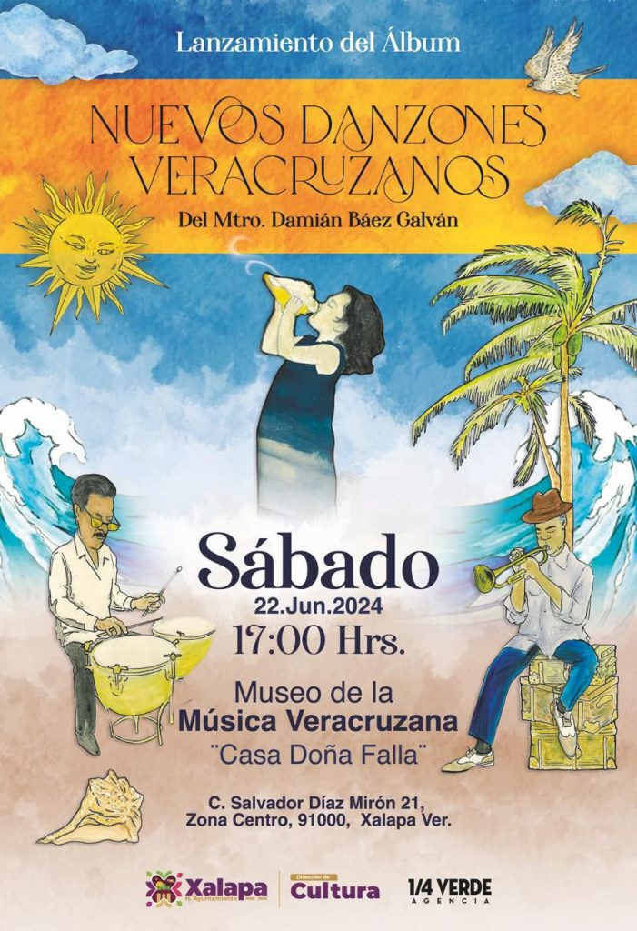 El sábado 22 de junio a las 17:00 horas, en el Museo de la Música Veracruzana, Damián Báez Galván lanzará el álbum “Nuevos danzones veracruzanos”; a las 11:30 y 17:30 horas en el Teatro J.J. Herrera, el Ballet Royal Xalapa presentará “Katy la oruga” y “Alicia en el País de las Maravillas”.