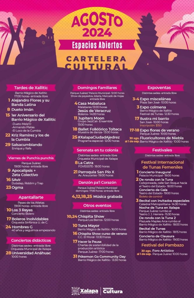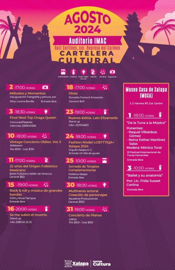 Para más información y detalles de los eventos se puede consultar la página de Facebook Cultura Xalapa.
