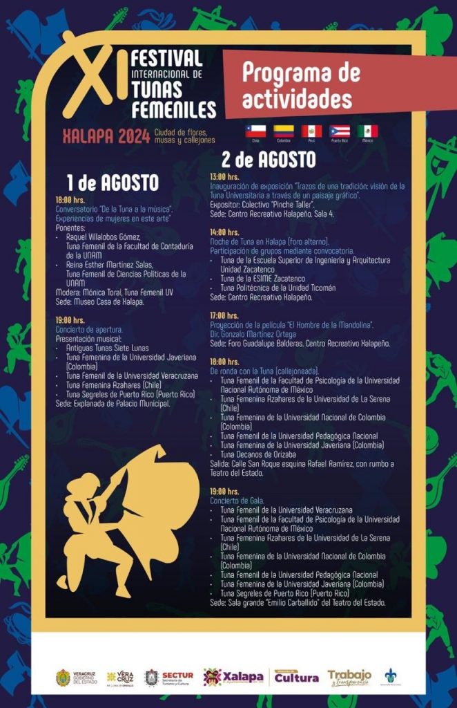 Durante los tres días se podrá disfrutar de conversatorios, recitales, conciertos, proyección de películas y callejoneadas, bajo la anfitrionía de la Tuna Femenil de la Universidad Veracruzana (UV).