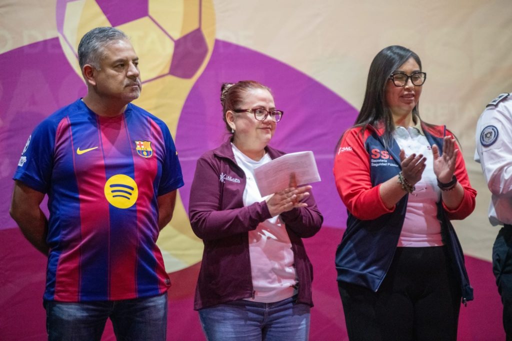 Acompañada por el Síndico Único, Dr. Marco Aurelio Martínez Sánchez, y el exfutbolista profesional Édgar Andrade Rentería, destacó que este evento, organizado en coordinación con la Secretaría de Seguridad Pública (SSP), es resultado del esfuerzo conjunto de distintas áreas que “creen en el deporte como el principal aliado para alejar a nuestras niñas, niños y jóvenes de las adicciones, de la violencia y del sedentarismo”.